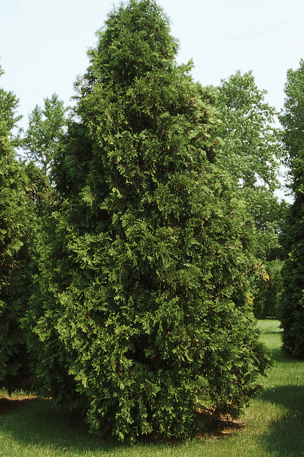 Naturally upright pyramidal evergreen bearing dense, dark green lacy foliage that holds its color throughout winter. Excellent screen or windbreak.