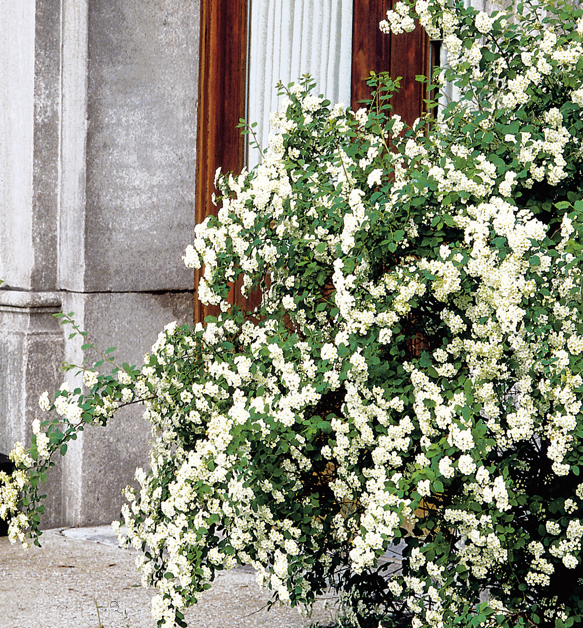 Semi-deciduous shrub that explodes with clusters of white flowers in spring. Superb choice for foreground, foundations or shrub borders. Best flower performance in full sun.