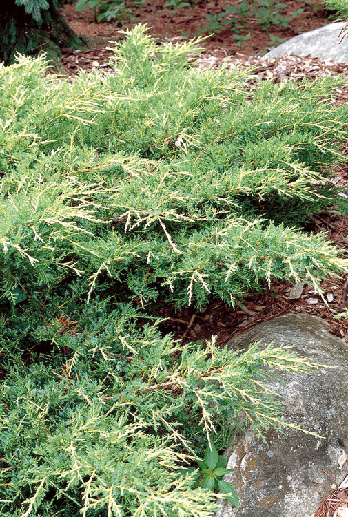 Dense, low-growing, spreading evergreen conifer covered in outstanding golden-green foliage. Valued for its cold hardiness and tolerance to city conditions.