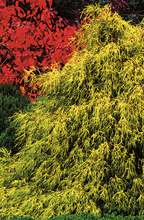 A true dwarf mutation of Golden Threadleaf False cypress, this slow-growing, mounding, cultivar has more intense yellow on thread-like foliage.