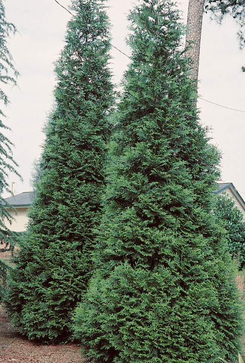 A popular, fast-growing evergreen hybrid (3–5 ft per year) used primarily for privacy screens, hedges, and windbreaks.