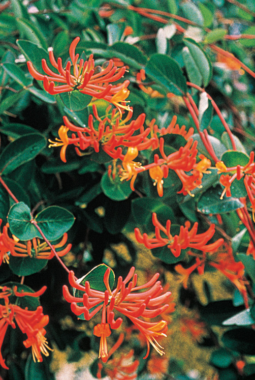 Brilliant red-orange clusters of trumpet-like blooms cover the vine in summer. Excellent for attracting hummingbirds.