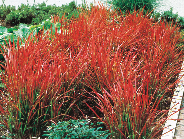 A striking, low-maintenance ornamental grass, famous for its upright blades that turn from green-tipped red in spring to intense crimson-red and burgundy in autumn.