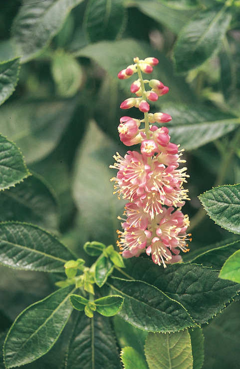 Robust plants produce striking rose pink flowers all summer. Glossy bright green foliage fades to gold in the fall. Beautiful as specimen or to fill a corner spot.