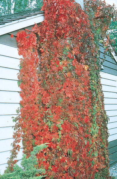 Very vigorous vine that clings or runs over ground, fence or trellis. Lobed glossy green leaves turn brilliant shades of red and orange in fall. Controls erosion on slopes.